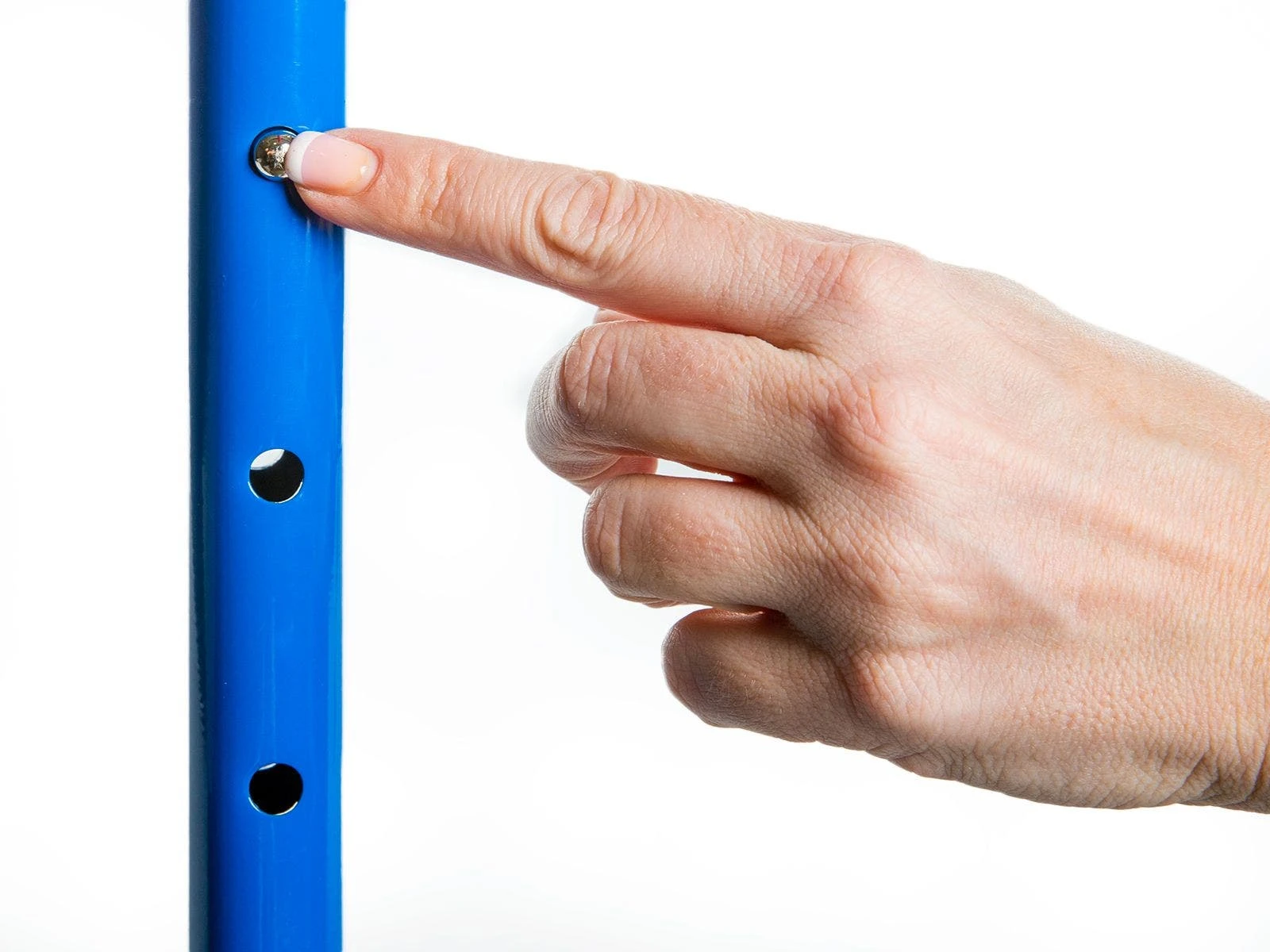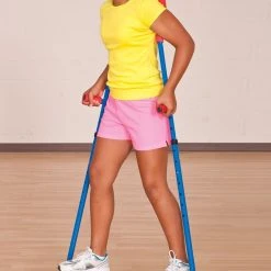 Tubular steel is durable, yet it’s also lightweight for quick maneuvering. An adjustable, locking-pin system lets teachers tailor the height of stilts to accommodate a wide range of students, from 4’6″ to 6’6″. Non-marking rubber tips protect gym floors. Steel frame supports up to 250 lb.