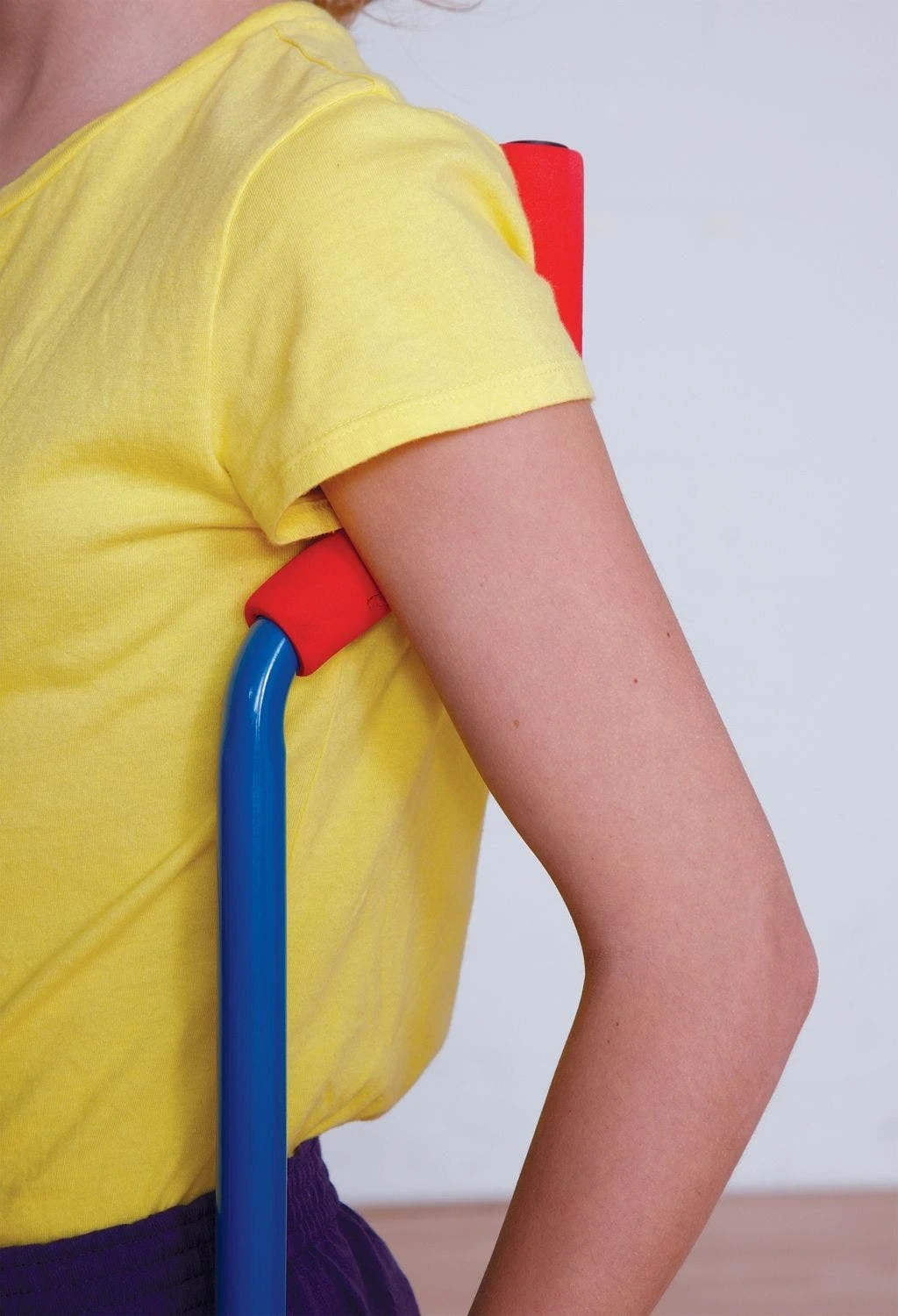 A unique S-bend design wraps under the arms and shoulders, allowing the user to stay upright with improved comfort. This also gives students greater control, making them great introductory stilts.