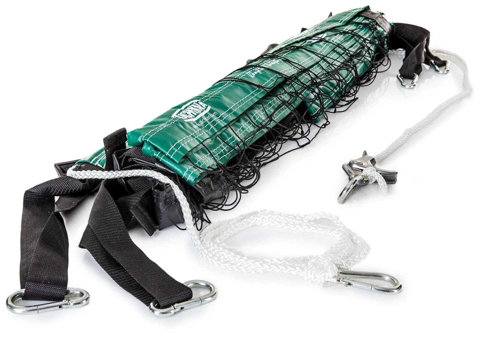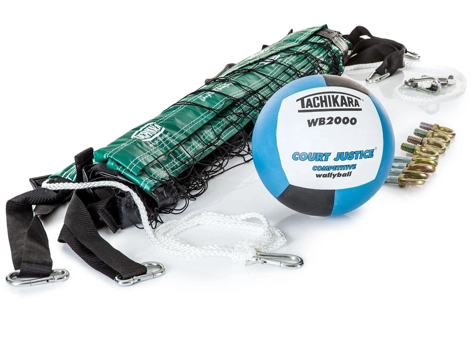 Complete Set includes 1 Wallyball net, 1 official Wallyball ball, and hardware for both concrete and wood installation.
