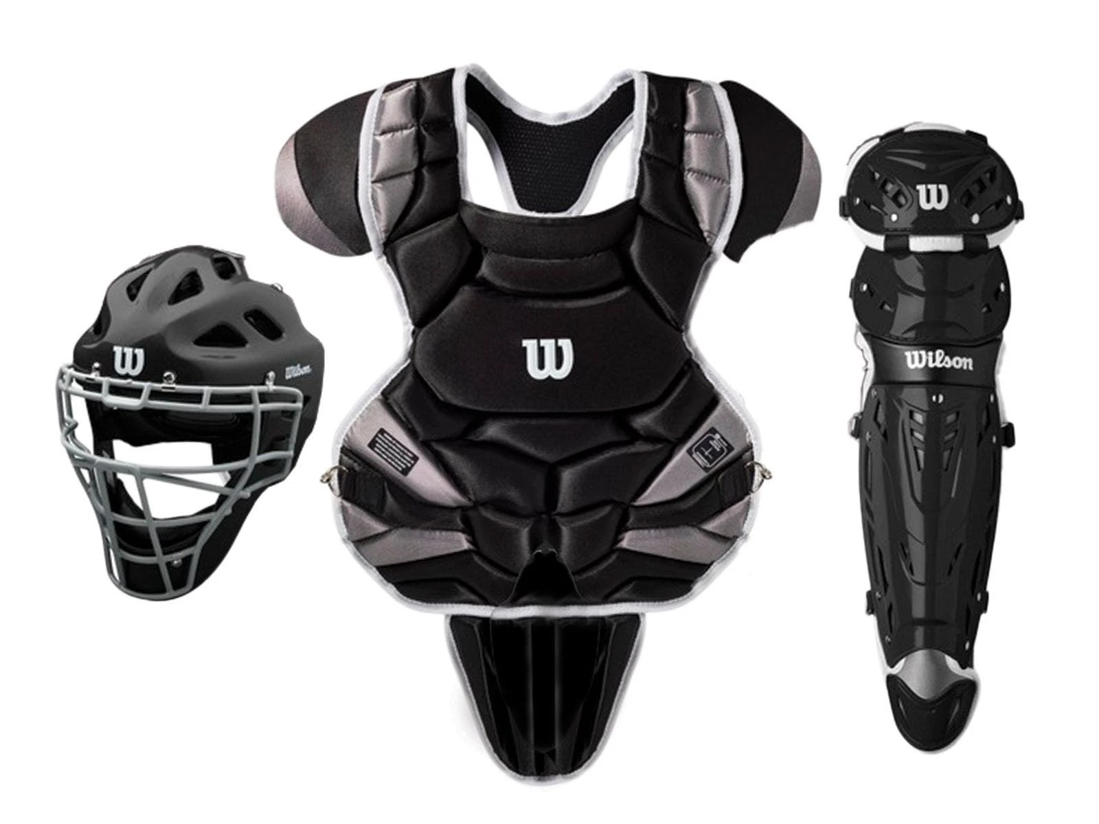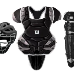 Designed for durability and easy mobility, this Wilson catcher’s gear is constructed to meet top safety standards set by NOCSAE.