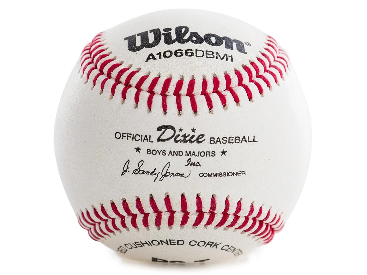 This ball is durable and tough, making it an excellent choice for Dixie League games. The grade C/D full-grain leather cover has a friendly feel that youth athletes appreciate. Raised seams provide better grip and control. Premium gray wool windings add to the durability of this ball, while a red cushioned cork keeps the ball alive during impact. Sold in a dozen.