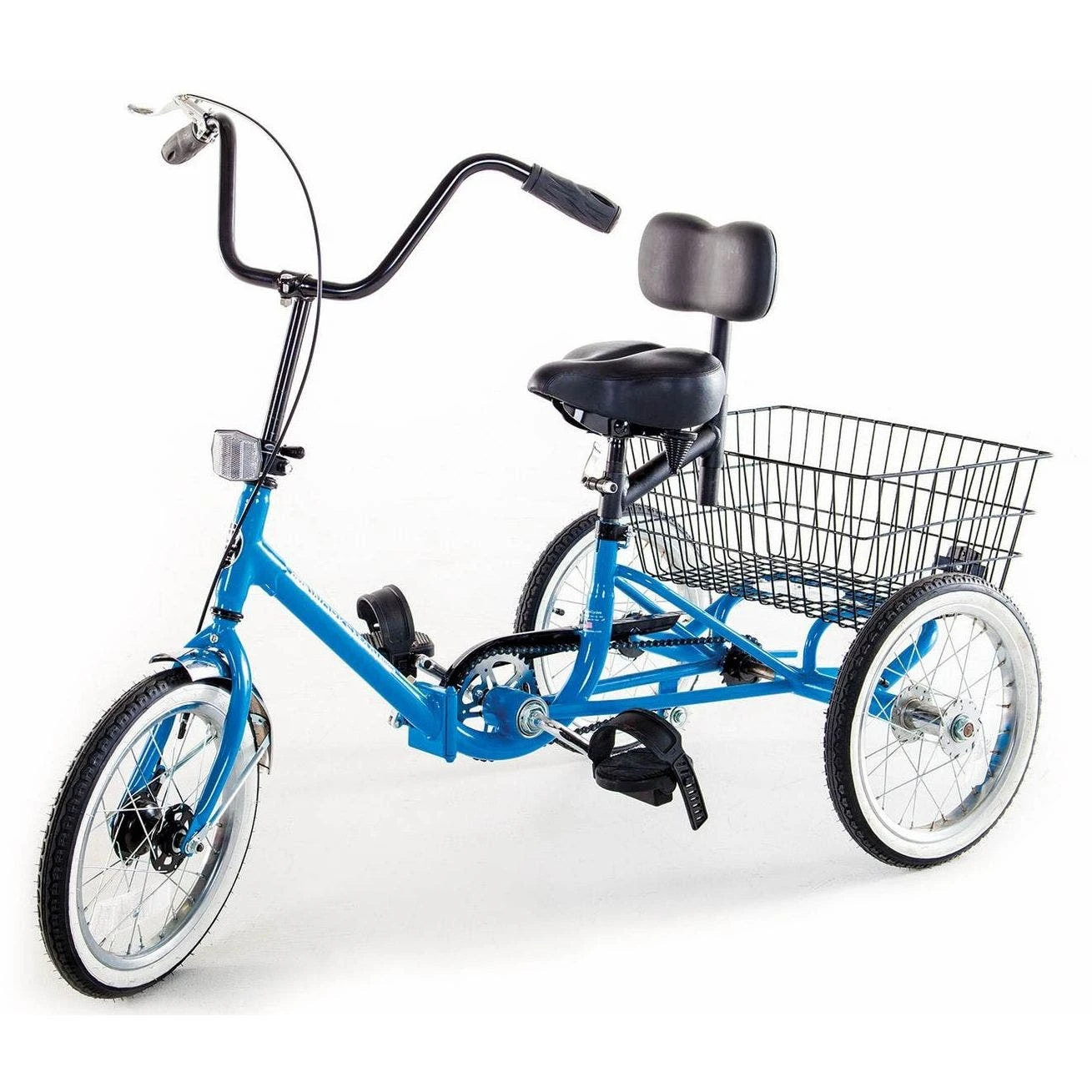 Trikes fold for easy, compact storage and can easily be transported in vehicles. This makes them optimal for use on field trips and in other locations where a trike may be optimal for transportation. Trikes measure 56″L x 29-1/2″W x 36″H.