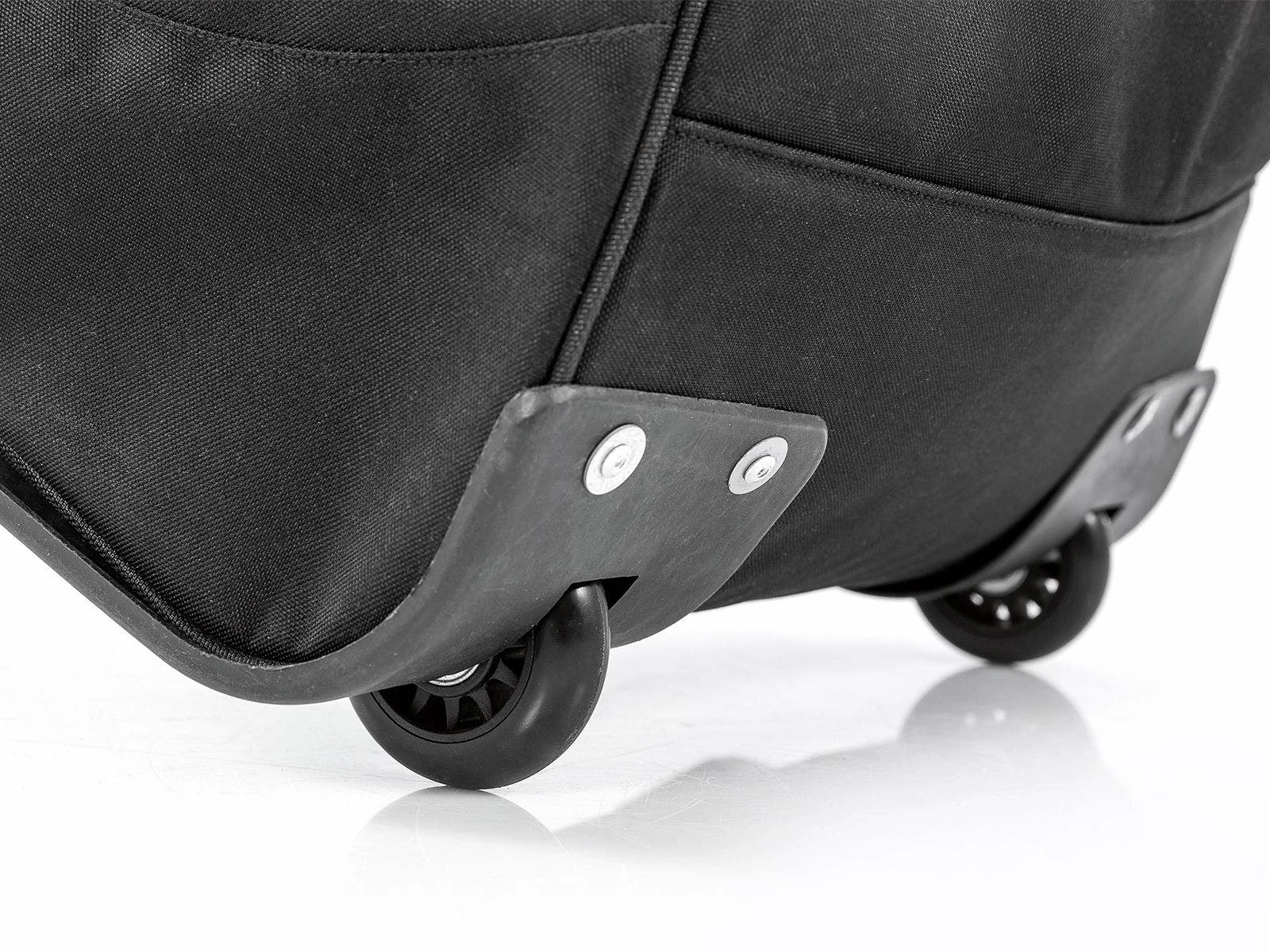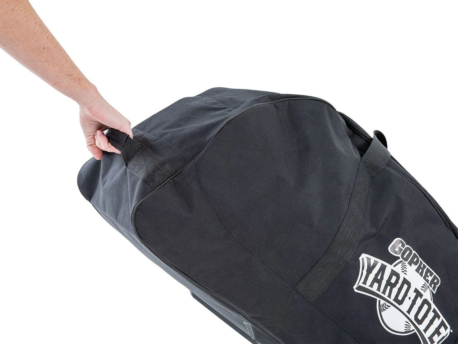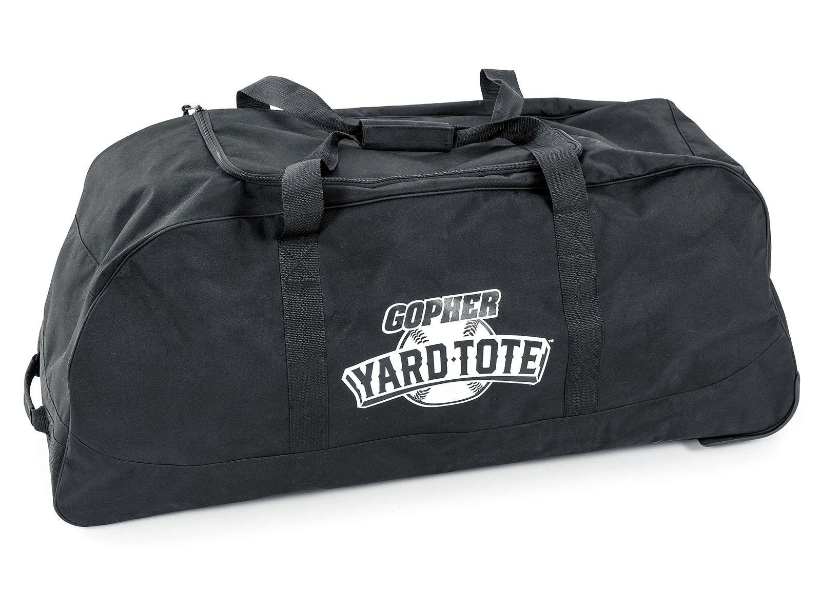 Polyester construction with a reinforced bottom makes this bag ready to haul heavy gear. Carry the bag using the sewn-on handles, or expand the telescoping handle and roll it on the inline wheels. This makes it easy to haul equipment from storage closets to practice fields, or on team buses when traveling to your next road game. Bag is 3’L x 15″W x 20″H.
